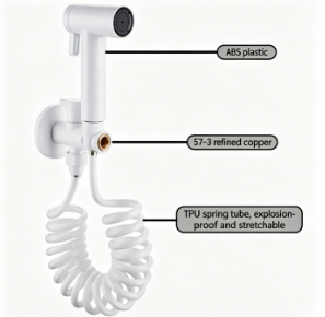 مصنوع من راتنج ABS عالي الجودة وآمن للطعام، تم تصميم بخاخ الشطاف هذا ليدوم طويلاً. إنه يوفر مقاومة استثنائية للصدمات، ومقاومة درجات الحرارة العالية، وأداء مقاوم للصدأ، مما يضمن حلاً صحيًا طويل الأمد لحمامك، ويتفوق بكثير على البدائل البلاستيكية الرخيصة.