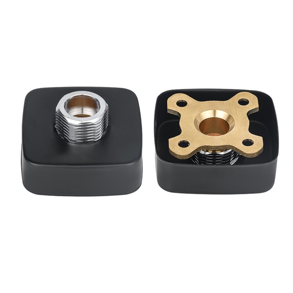 لوحة صنبور دش مربعة سوداء. الغرض الأساسي منها هو توفير قاعدة متينة ومسطحة وسهلة التركيب للصنابير المثبتة على الحائط. يعتمد المنتج الهيكل المركب من النحاس والفولاذ الكربوني: القوة الرئيسية وأجزاء التوصيل التي تكون على اتصال مباشر بالجدار وواجهة الحنفيات تستخدم النحاس لضمان مقاومة التآكل على المدى الطويل وضيق الاتصال؛ باعتباره الهيكل الداعم الرئيسي، فإن جسم اللوحة مصنوع من الفولاذ الكربوني عالي القوة، والذي يوفر الصلابة الداعمة اللازمة للكل ويمنع التشوه بسبب الإجهاد طويل الأمد. يتم معالجة سطح جسم اللوحة عن طريق الطلاء الكهربائي وعمليات أخرى، مما يظهر المظهر الذهبي وسهل التنظيف. لقد تم تصميمه كمربع قياسي مع فتحة تثبيت محددة مسبقًا لتتناسب مع ملحقات الصنبور الشائعة وتبسيط عملية التثبيت.