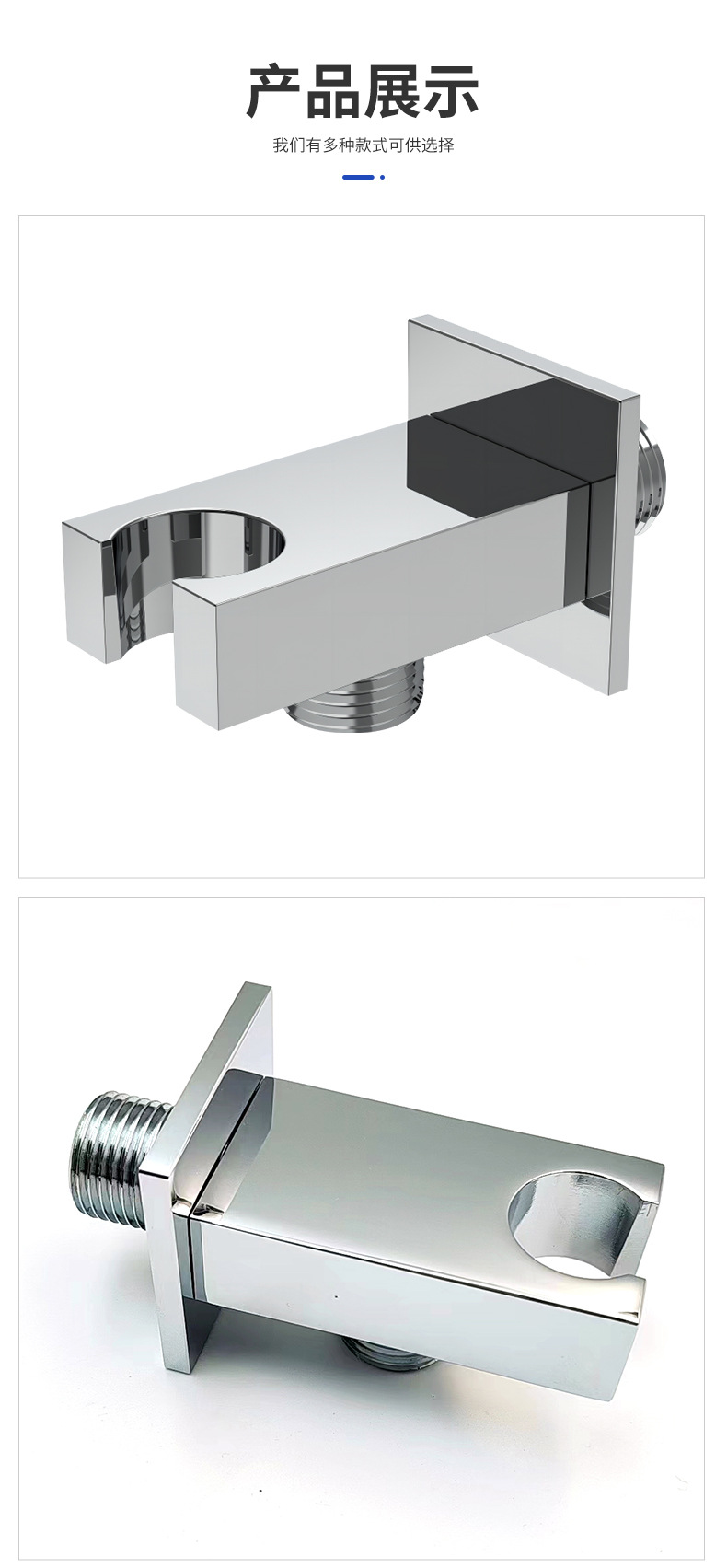 تصميم حديث وأنيق:يتميز بشكل مربع نظيف مع لمسة نهائية من الكروم الفاخر. إنه لا يعمل فقط كحامل دش عملي ولكنه يعزز أيضًا المظهر الجمالي العام لمساحة الحمام.