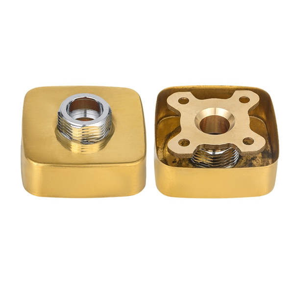لوحة صنبور دش مربعة ذهبية. الغرض الأساسي منها هو توفير قاعدة متينة ومسطحة وسهلة التركيب للصنابير المثبتة على الحائط. يعتمد المنتج الهيكل المركب من النحاس والفولاذ الكربوني: القوة الرئيسية وأجزاء التوصيل التي تكون على اتصال مباشر بالجدار وواجهة الحنفيات تستخدم النحاس لضمان مقاومة التآكل على المدى الطويل وضيق الاتصال؛ باعتباره الهيكل الداعم الرئيسي، فإن جسم اللوحة مصنوع من الفولاذ الكربوني عالي القوة، والذي يوفر الصلابة الداعمة اللازمة للكل ويمنع التشوه بسبب الإجهاد طويل الأمد. يتم معالجة سطح جسم اللوحة عن طريق الطلاء الكهربائي وعمليات أخرى، مما يظهر المظهر الذهبي وسهل التنظيف. لقد تم تصميمه كمربع قياسي مع فتحة تثبيت محددة مسبقًا لتتناسب مع ملحقات الصنبور الشائعة وتبسيط عملية التثبيت.