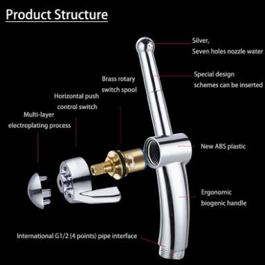 يتميز بخاخ الشطاف الخاص بنا بفوهة فضية ذات 7 فتحات توفر تدفق مياه ناعمًا ومتساويًا وقويًا. يوفر تنظيفًا لطيفًا وشاملاً للنظافة الشخصية، مع الحفاظ على الضغط القوي لتنظيف المرحاض والأسطح بشكل فعال، وهو مثالي لجميع احتياجات حمامك.