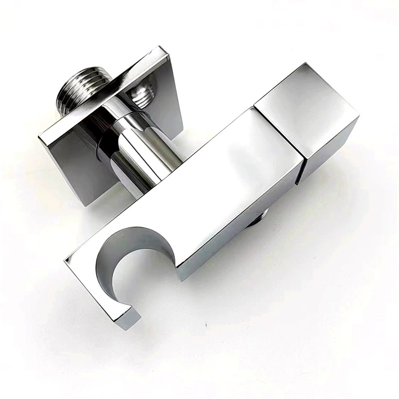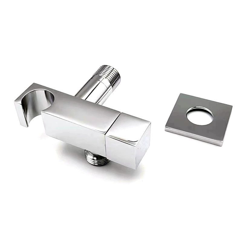 صمام زاوية مربع من النحاس الصلب السميك مع حامل دش، صمام إيقاف مستقيم 1/2 بوصة لرذاذ البيديت والدش المحمول، تركيب سباكة الحمام