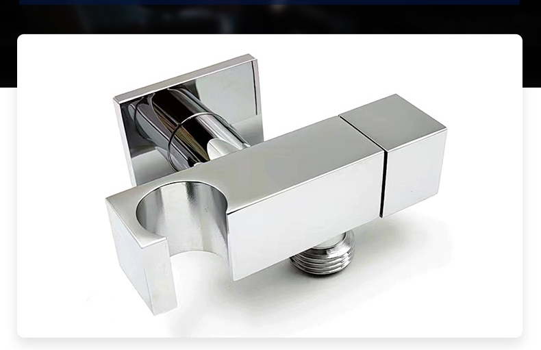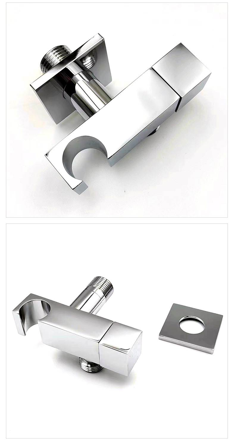 والغرض الأساسي منه هو توفير حل اتصال قوي ومضاد للتسرب وسهل التثبيت للاستحمام المحمول المثبت على الحائط. يعتمد المنتج هيكلًا نحاسيًا عالي النقاء: الأجزاء الرئيسية الحاملة للقوة ونقل المياه التي تكون على اتصال مباشر بالماء والجدار تستخدم النحاس الفاخر لضمان مقاومة التآكل على المدى الطويل، ومقاومة الصدأ وضيق الاتصال؛ تتم معالجة سطح المنتج عن طريق عمليات الطلاء والتلميع بالكروم، مما يظهر مظهرًا لامعًا من الكروم ومضادًا للقاذورات وسهل التنظيف. تم تصميمه بمواصفات خيوط قياسية وغطاء زخرفي مطابق ليناسب خراطيم الدش المحمولة باليد ومنافذ الحائط، مما يبسط عملية التثبيت ويضمن تأثير تركيب أنيق وجميل.