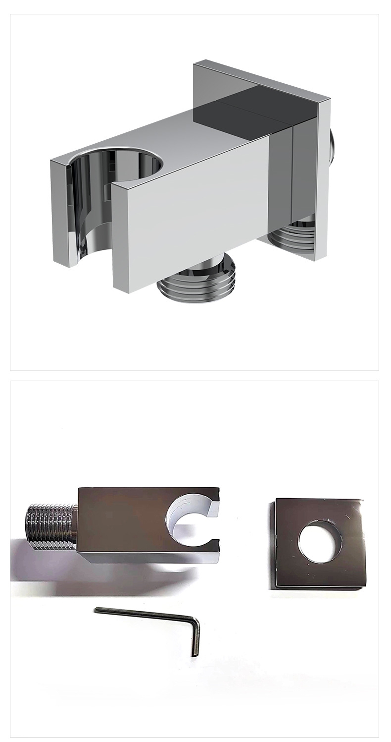 تصميم حديث وأنيق:شكل مربع أنيق بلمسة نهائية من الكروم، لا يعمل فقط كحامل دش عملي ولكن أيضًا يعزز المظهر الجمالي العام لمساحة الحمام.